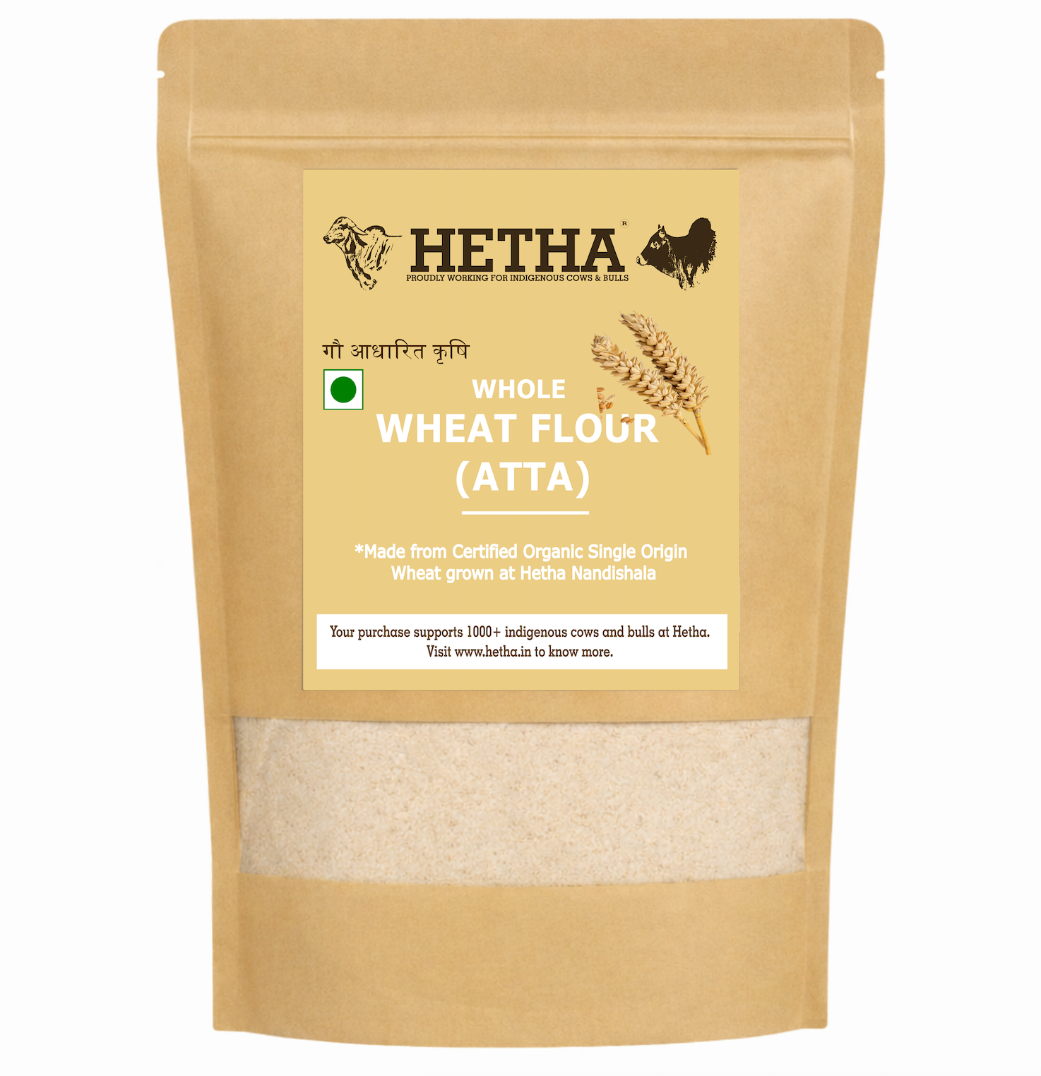 Whole Wheat Flour (Atta) made from CERTIFIED ORGANIC - SINGLE ORIGIN - WHEAT grown at Hetha Nandishala, Bhiroli (UP).